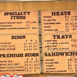 - Specialties: Lean brisket, pulled pork, house pickled red onions and jalapeño mix, baked mac
