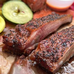 The two of us ordered online but didn't like the delivery options and decided to pick it up. My bro. had his days mixed up, so no brisket pastrami for us on a Wednesday if only it was Thursday. We ordered the lean brisket, pulled pork with sides of spicy mac n cheese, potato salad and coleslaw and of course the they thre in some house pickled red onions and jalapeño mix with some burnt ends for good measure. Everything was really good. The lean brisket was my favorite. I'll order regular fat next time. The spicy mac was good. The house pickled jalapeño and onions, wow. That's awesome and really hot. Nice. I definitely need to bring my wife here. Maybe they'll have sausage links when I come back. The only bad part here. They only make so much. They stay open till they run out of food. We got there a little after 2 and they were already running out of items.